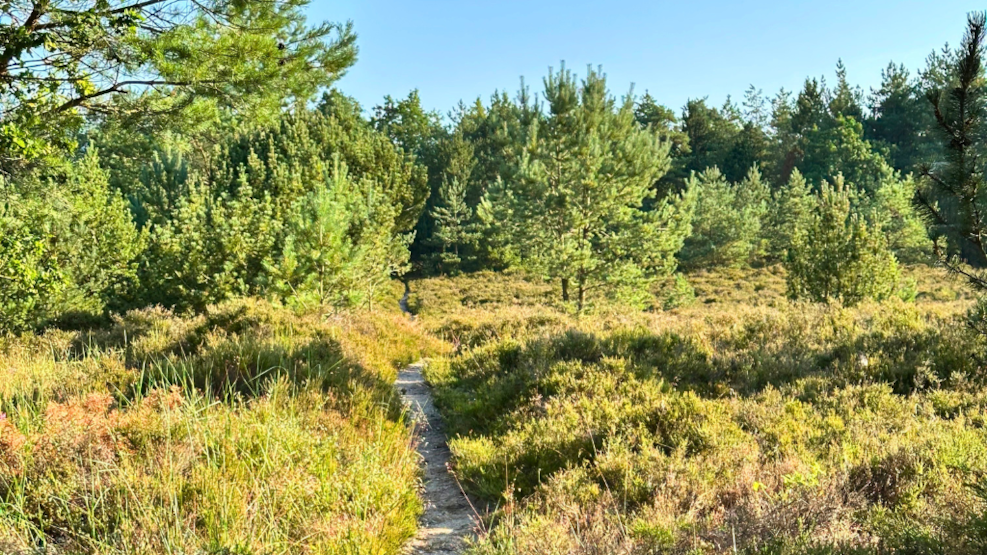 Hier kannst du alles erleben, von friedlichen Waldwegen und offenen Heideflächen bis hin zu vogelreichen Mooren und alten Kiesgruben. Egal, ob du eine kurze, ruhige Wanderung oder eine längere Tour im hügeligen Gelände suchst – hier findest du die passende Route.