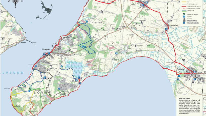 Auf dieser Route kommen Sie an Grabhügeln und den Spuren der Eiszeit bei Knudshoved vorbei, wo die verschiedenen Erdschichten sichtbar sind. Unterwegs liegt auch das Gut Herregården Hessel, das heute als Landwirtschaftsmuseum dient. Außerdem gibt es eine Naturbasis mit Sheltern, Feuerstelle, Toilette und Wasser.